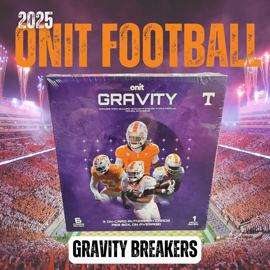 You are purchasing one Hobby Breakers box of 2025 ONIT Gravity Tennessee Vols Football to be opened live on stream.